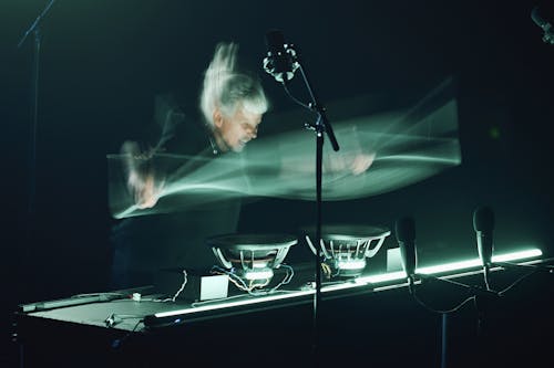 Ash Fure's somatic musical practice eschews conventional composition and notation in favour of sculpting and wielding sound in a visceral way. In Hive Rise (2020), Fure performed with a rig of speaker cones, manipulating them through kinetic movement. For Animal (2025), she returns to this subwoofer assemblage, playing the 12-inch speaker cones with a large sheet of polycarbonate – which acts as a reflective surface that filters sound and light simultaneously. Techno ambience, whirring textures, and rustling patterns build and recede in Fure's frenetic percussive performance. Cyclical rhythms swarm into the listener's ears, burrowing deeper into some subconscious realm, pulsing with an omniscient strangeness. Fure’s unique live approach harnesses wild energy and sweaty athleticism – pouring every bit of herself into the performance. Making “a Feminist push against some of the more disembodied approaches to electronic music,” her frequencies are created to be felt as much as heard: thick, hair-raising sub-bass washes over the audience, enveloping them into a noisy ocean of sound – part club, part avant-garde, and all the way animalistic.
