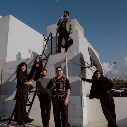 SANAM is a Beirut-based sextet that infuses the sounds of traditional Egyptian song and modern Arabic poetry with hypnotic post-punk, kosmische kraut-rock, and vivid psychedelia in a genre-defying blend of jazz, electronic, and improvisational music. Formed in 2021 following an an invitation to collaborate with Hans Joachim Irmler (of Faust), the group features Sandy Chamoun on vocals, Antonio Hajj on bass, Farah Kaddour on buzuq, Anthony Sahyoun on guitar and synth, Pascal Semerdjian on drums, and Marwan Tohme on guitar – each an accomplished musician in their own right with ties to influential Lebanese acts like Kinematik, Postcards, Al Rahel al Kabir, and Oviid. Their debut album Aykathani Malakon released to critical acclaim in 2023. Its follow-up, Sametou Sawtan (2025), built upon the energy of their debut, giving sound to the urgency, mysticism, and emotional upheaval of contemporary life in Lebanon and its surrounding region. SANAM's music treads the fertile middle-grounds between folklore and futurism, summoning a unique, earthy sound stretched across time and space.